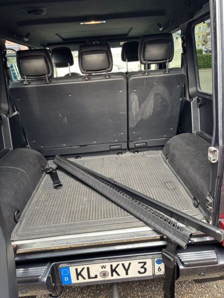 Zusätzlich original G-Klasse 16-Zoll A4634010702 ET63 - 7 1/2 Jx16 H2 mit SAVERO WT 265/70R16 112T ❄️ DOT 5WC8 2417 mit 8-10mm; Schneeketten passend Thule XD-16 (nie benutzt) können zusätzlich gekauft werden.
