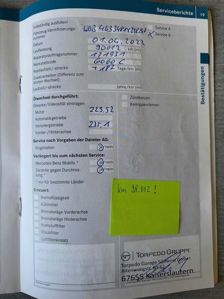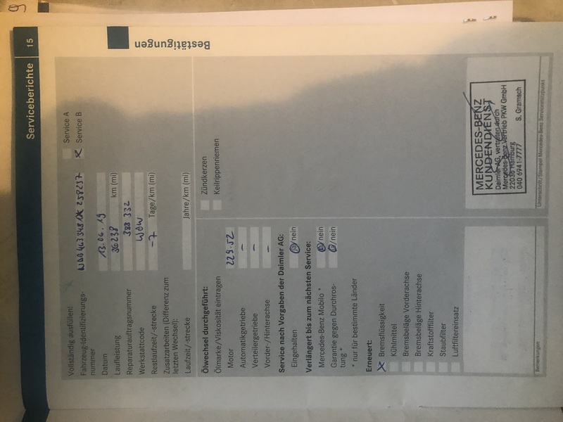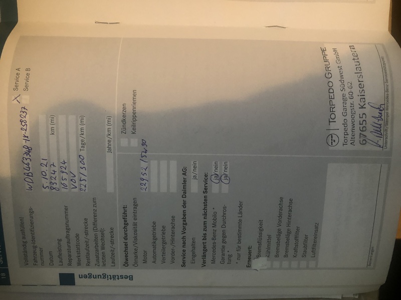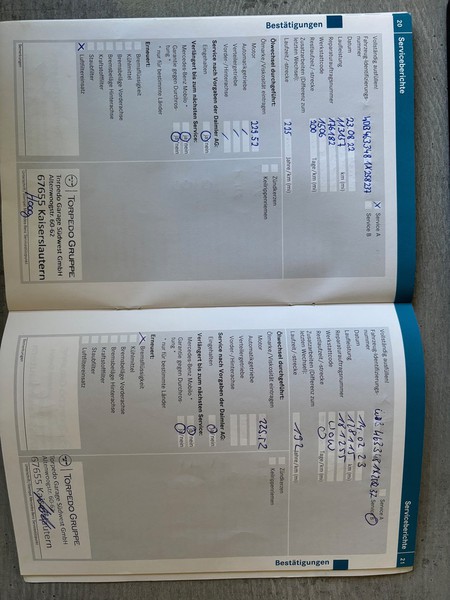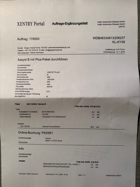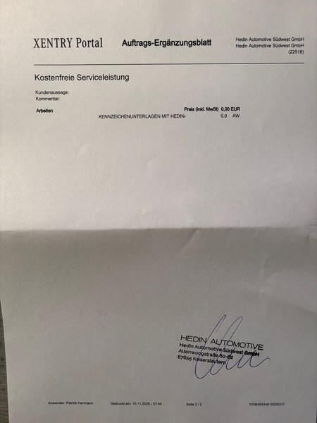 Letzter Service bei Mercedes Kaiserslautern durchgeführt am 10.11.2025 (siehe unten).